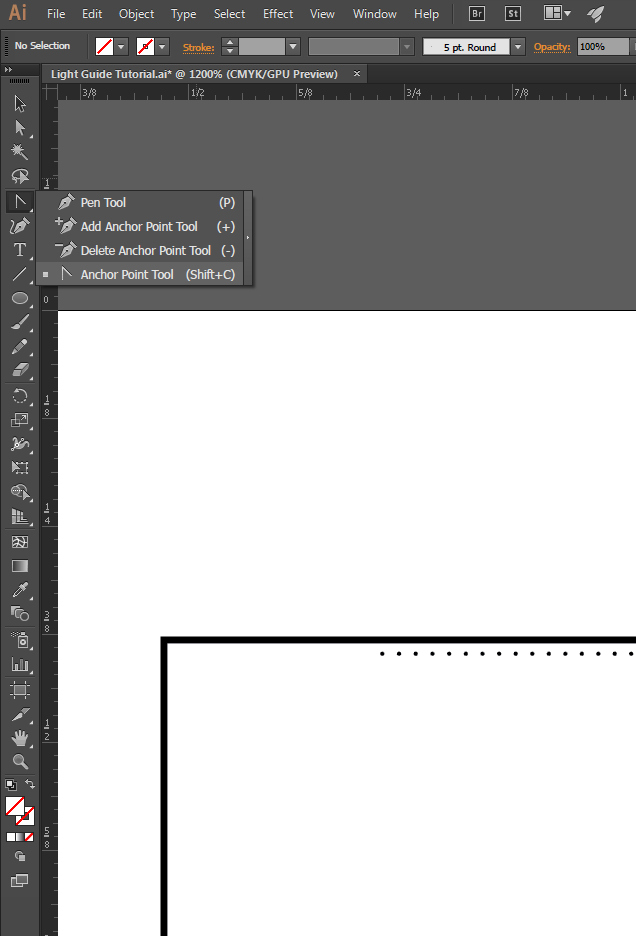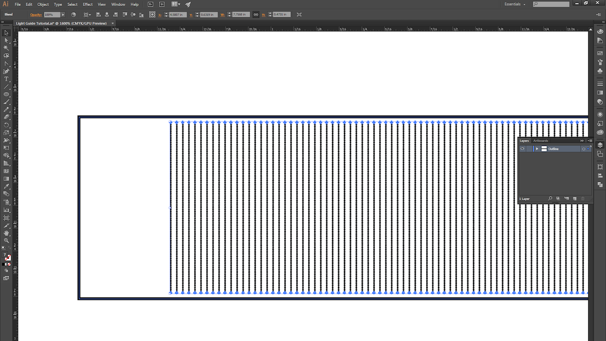 7. You should see 700 evenly spaced dots! In order to get them to start off sparsely spaced and then get closer together, we'll modify the path of the blend. Select the Anchor Point Tool (Shift + C).