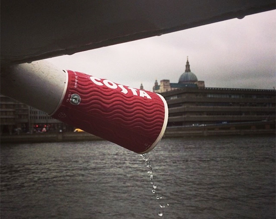 Conveniently, there is also a Costa coffee shop on the boat. So someone removed the base of a paper coffee cup, and stuck the cup on the pipe. This small fix extended the drainpipe, keeping the passengers dry. Brilliant.