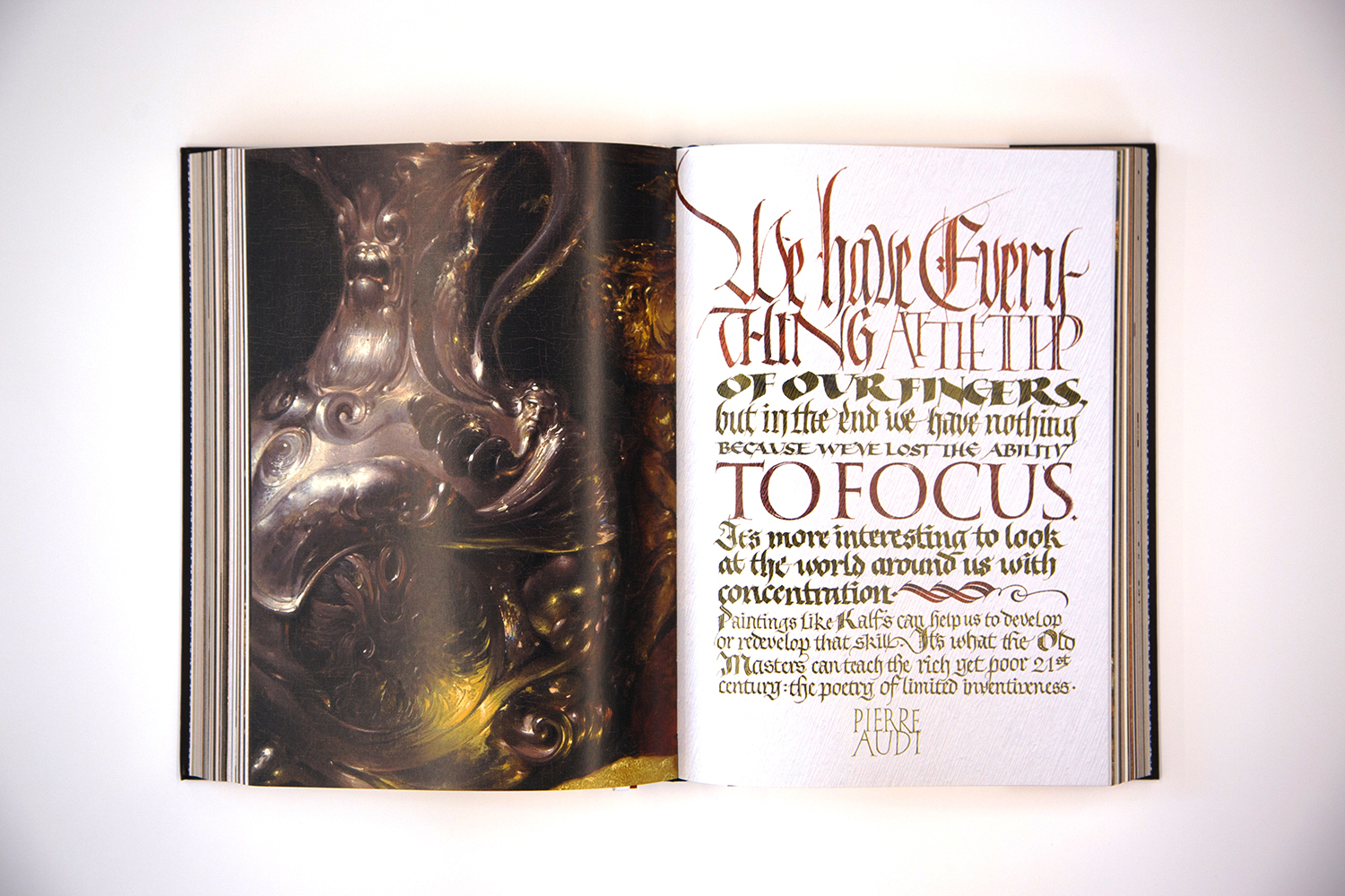 It’s beautiful. I think beauty is very important. Having beautiful things around you makes you feel alive. In the age of digital—which these days has become almost synonymous with disposable—it’s really nice to stop the train for a minute and put something in your hands that has heft, and is an extremely lavish, unapologetically gilded object. To me it’s like holding a piece of jewelry or going to the symphony. The sensorialist in me is awakened by this book and I’m very proud to have been included in it.