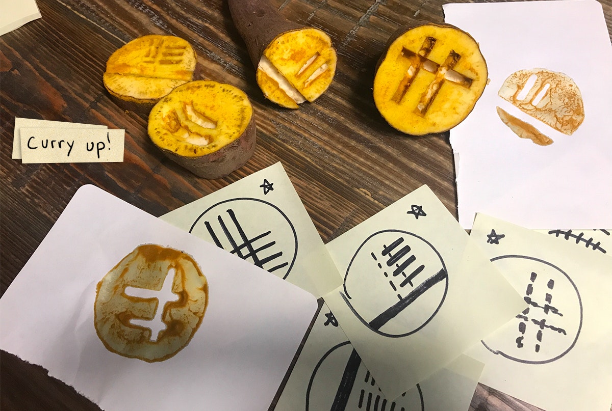 Outside of work, I run a pop-up curry shop with some friends. We make curry with a Japanese twist, using seasonal ingredients or flavoring that you might not usually find in curry. I’m lucky to be surrounded by talented graphic designers who helped me transform my very analogue potato stamp logo into a digital masterpiece.