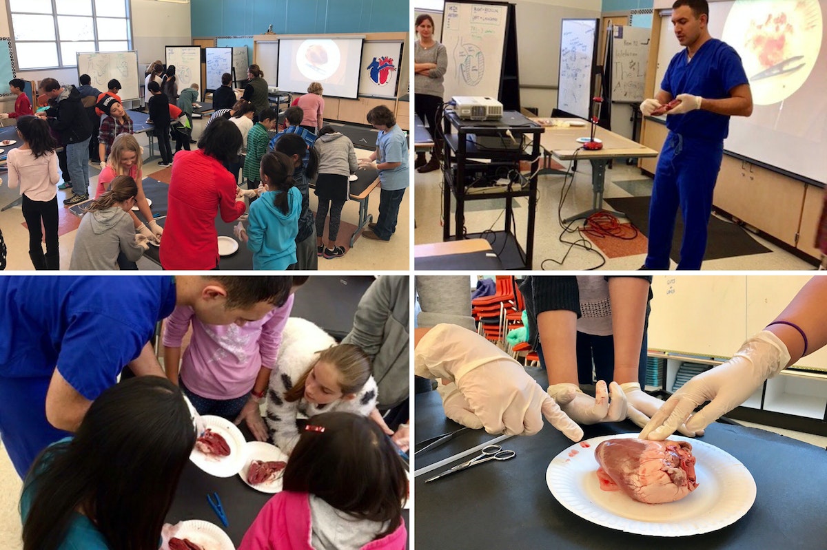 As a Biodesigner + Cardiologist at IDEO Palo Alto, I led three classes of 5th graders at Covington Elementary School (Los Altos, CA) in their annual sheep heart dissection this Valentine's Day. I introduced them to the fundamentals of cardiovascular anatomy and physiology, including the structure and function of each chamber and valve, their relationships to surrounding conduits, and the hemodynamics and electrophysiology that drive the system. You know, just the basics. All of the kids experienced a hands-on exploration of the heart’s surface and texture, then under the supervision of volunteering parents, dissected their ways into the depths of the organ. Accompanying me was my rockstar hostess and sidekick Celia Wedner, future doc and daughter of Palo Alto’s Grant Wedner.
