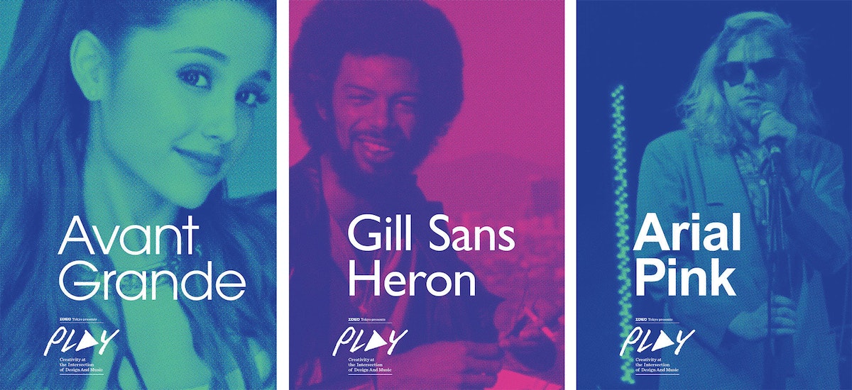 You may have heard: Designers like fonts. They dream in Helvetica. Letterforms may play as central a role in a designer's life as their favorite bands. Knowing this, our Tokyo studio threw an event called "PLAY - Creativity at The Intersection of Design + Music." We needed posters to promote it, and asked ourselves: How might we bring music and design together? The exercise quickly devolved into a competition for who could come up with the worst font-band pun. There's a slim overlap in the venn diagram of people who appreciate both Frank Zappa and Zapf Dingbats, but that is exactly who we were aiming for. Got your own #ideobandfont? Do share.