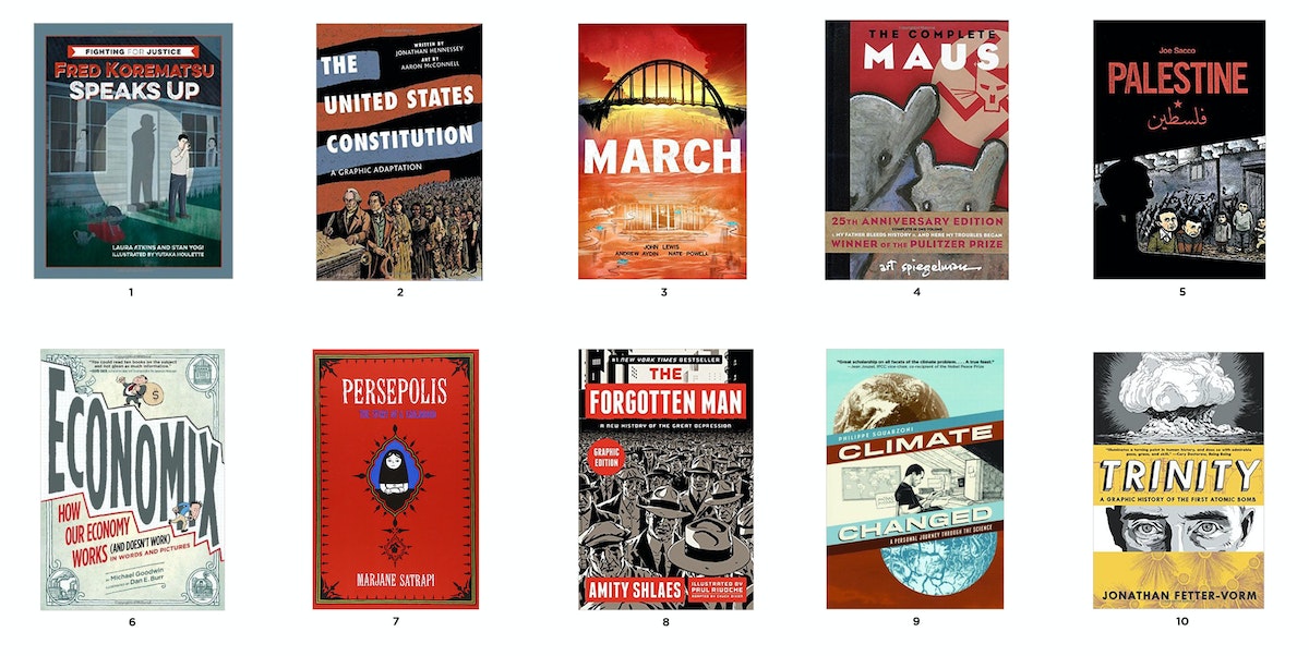 When trying to gain empathy for people unlike you, panels can be more powerful than headlines. Some of the best books published in recent years have used comics to crack open sensitive political, cultural, and historical topics. You'll note that this list isn't without bias. Graphic nonfiction is a tool more frequently used by the left, and it's hard to find many examples with a more conservative outlook—trust us, we tried. But we believe that all of the books on this list have a different perspective to offer, and can help us look at the world in a new way. Did we miss any others? Tweet us. We'd love to hear what you think.