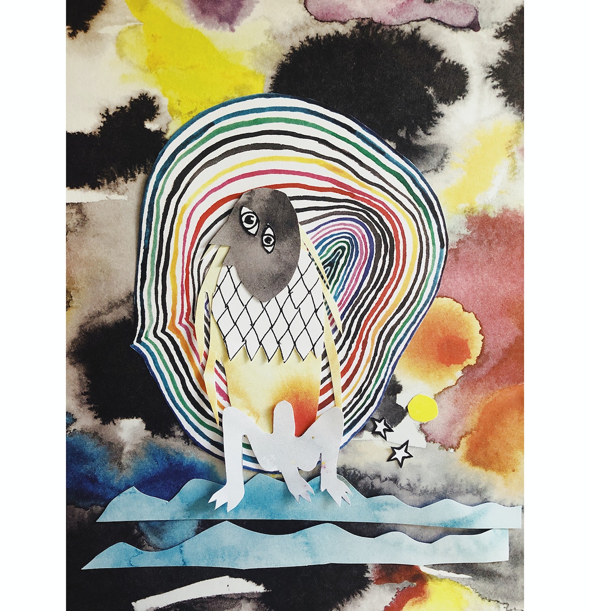 "My Amabie appeared to me in a meditation and told me to visualize her in psychedelic splendor, emerging from a vat of molten gold floating upon the sea. She also told me to set this collage on my bedside table for five days and five nights, so that’s what I’m going to do!"