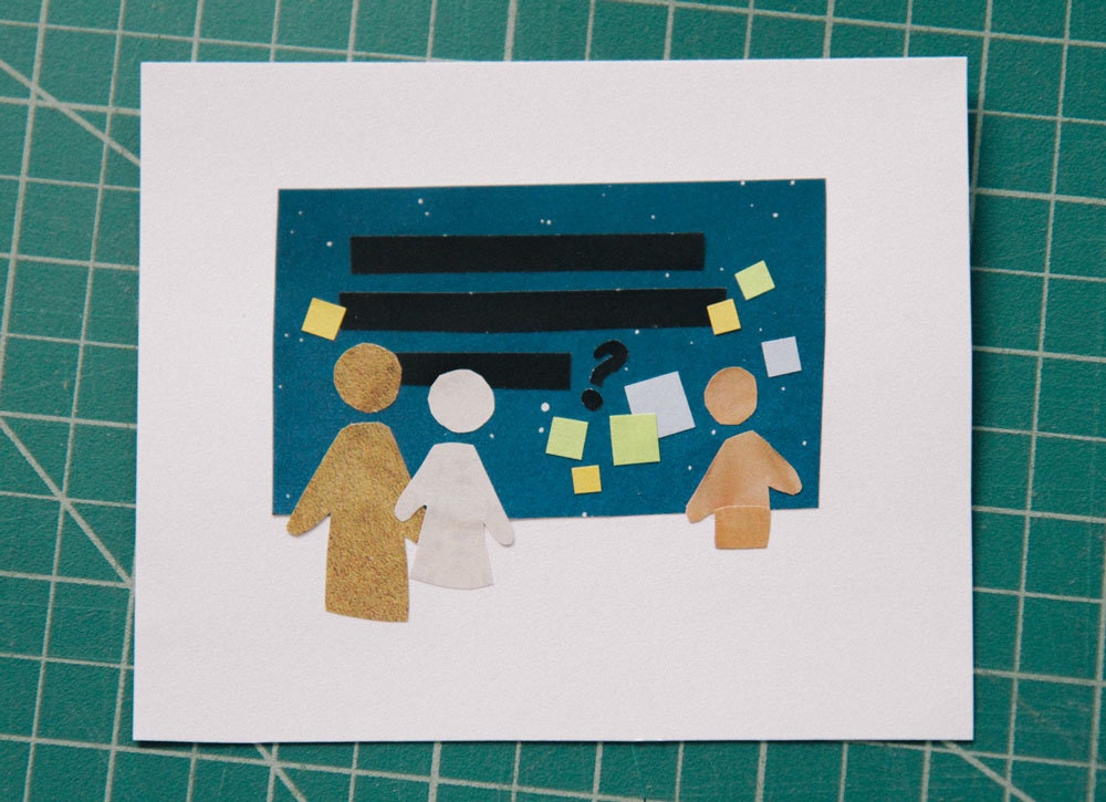 Post a question in a shared space in the office—the kitchen, in the bathroom, by the bike rack—and allow people to add ideas over several days. At our San Francisco studio, we post monthly questions and prompts in one of the private, unisex bathrooms in our office. The questions often ask people to reflect: “I feel loved when…” and “I show my love by…” Or, “What’s something new you want to try this year?” As an introvert, it’s my porcelain palace.