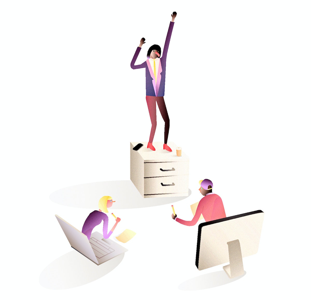 If you're ready for an added level of risk, get people to do rhythmic movement in unison. This requires a charismatic (i.e. shameless) facilitator or a very willing group of participants—or, ideally, both. The facilitator takes the group through a set of dance moves, and then everyone performs them together to music. If you start a meeting like this, nothing that happens afterwards will faze anybody.