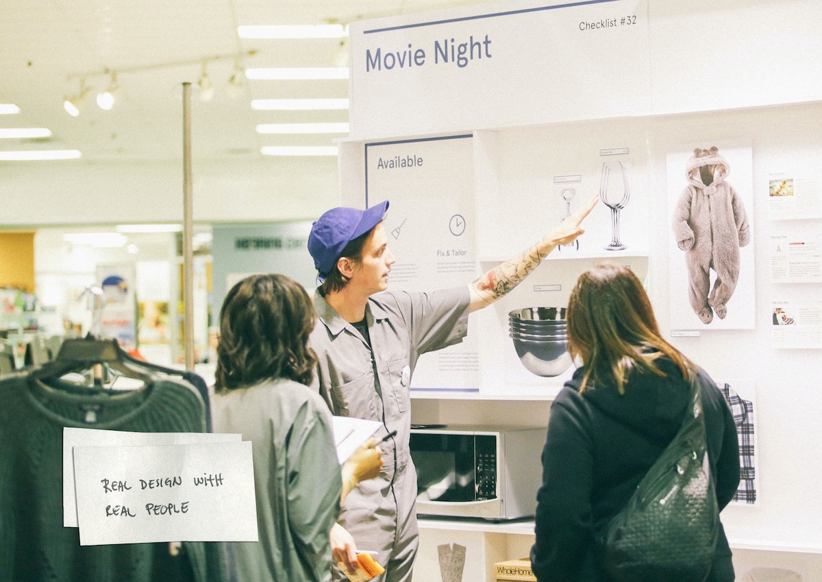 The prototype begins outside the store with a simulated mobile shopping experience that ushers shoppers directly to our redesigned displays. The point of the prototype is to test a store layout that could feel like an extension of a mobile shopping experience. Think curated themes, minimal options, and intuitive product comparison interactions. Turns out, some things they hate, some things they love, and a few things don’t make sense to them at all! All of that is great feedback for moving forward, by the rock-and-roll rules of prototyping. Achieving a realistic level of physical interaction while keeping the design at a prototypical level is key to getting honest feedback. We draw our insights from watching how users interact with the space, as well as their answers to directed prompts.