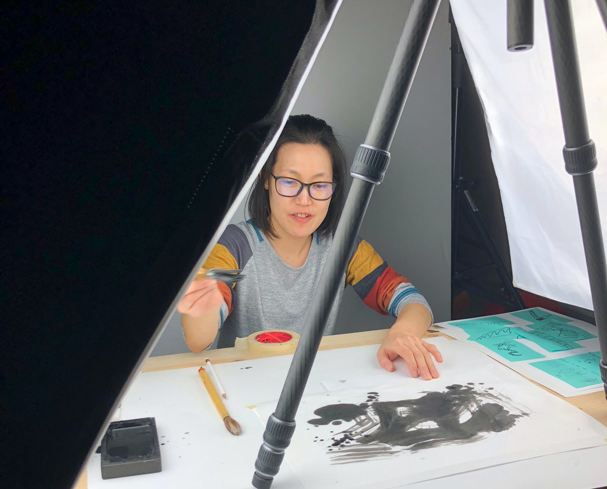 The day I got the assignment, I ran to the art store and bought brushes, ink, and a grindstone. I set the tools on my desk, which became the stage. I was the conductor, interpreting the text like a musical score.