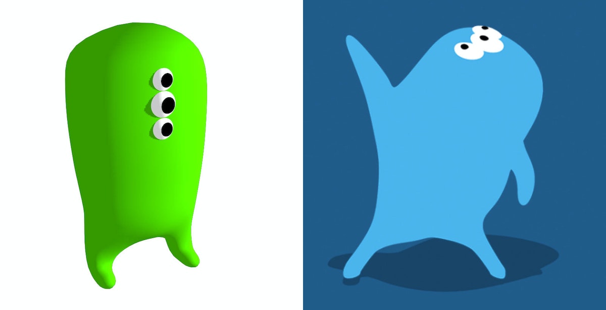 It might seem hardly noticeable, but think about it: if the image was truly two dimensional, there would be no top or bottom, no back or sides. To make the monsters look flat, but still have the ability to rotate 360°, the team used 3D modeling to create the characters, and then stripped down the art to make the monsters look two dimensional. Even though they appear flat, all the monsters have skeletons and skins, and they can turn to any angle.