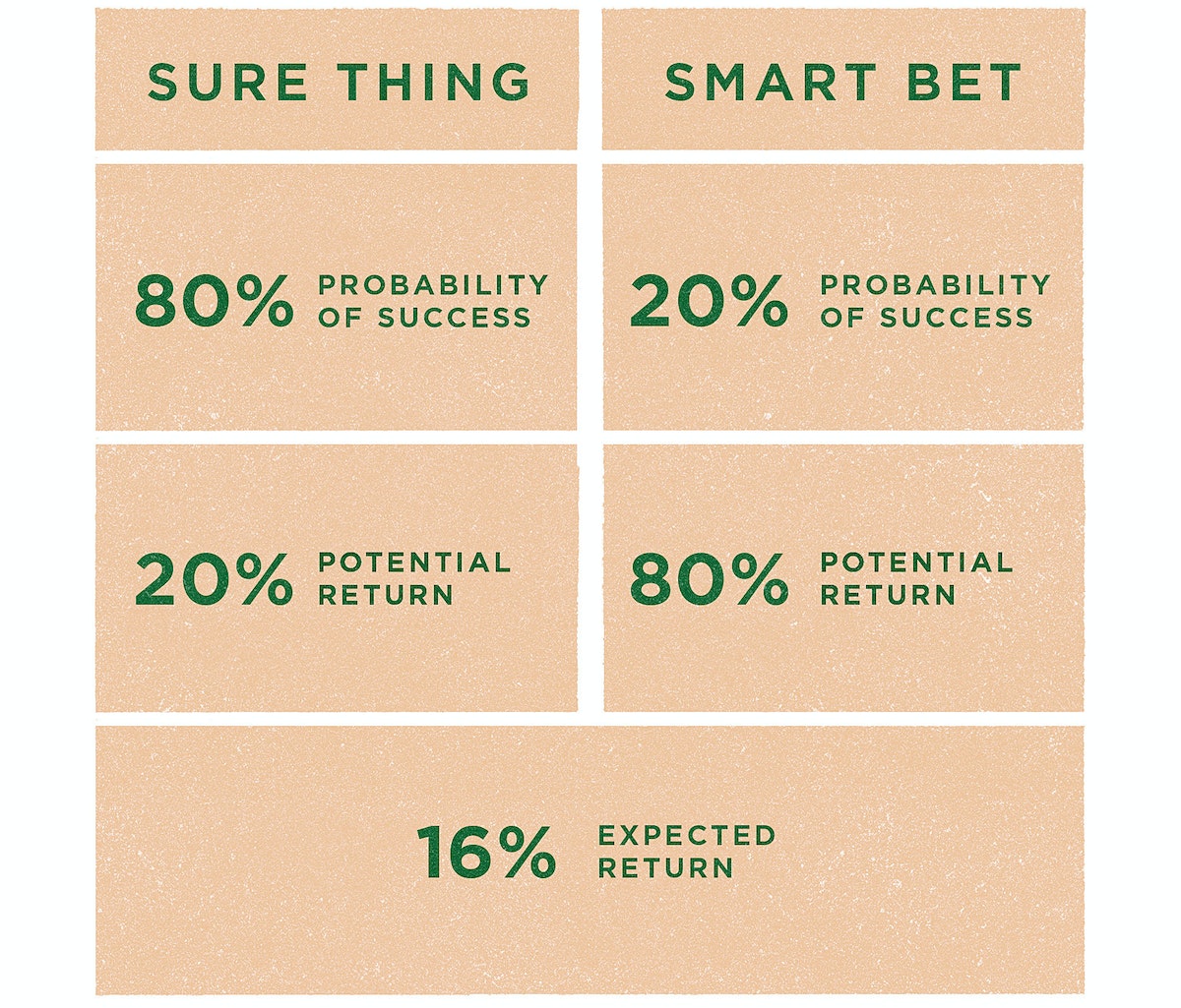 In a completely rational world, a decision between investing on a sure thing or a smart bet should be a toss up. However, to many executives, investing in riskier projects can feel like career Russian roulette. In your own company, how much of a balance do you have between sure things and smart bets?