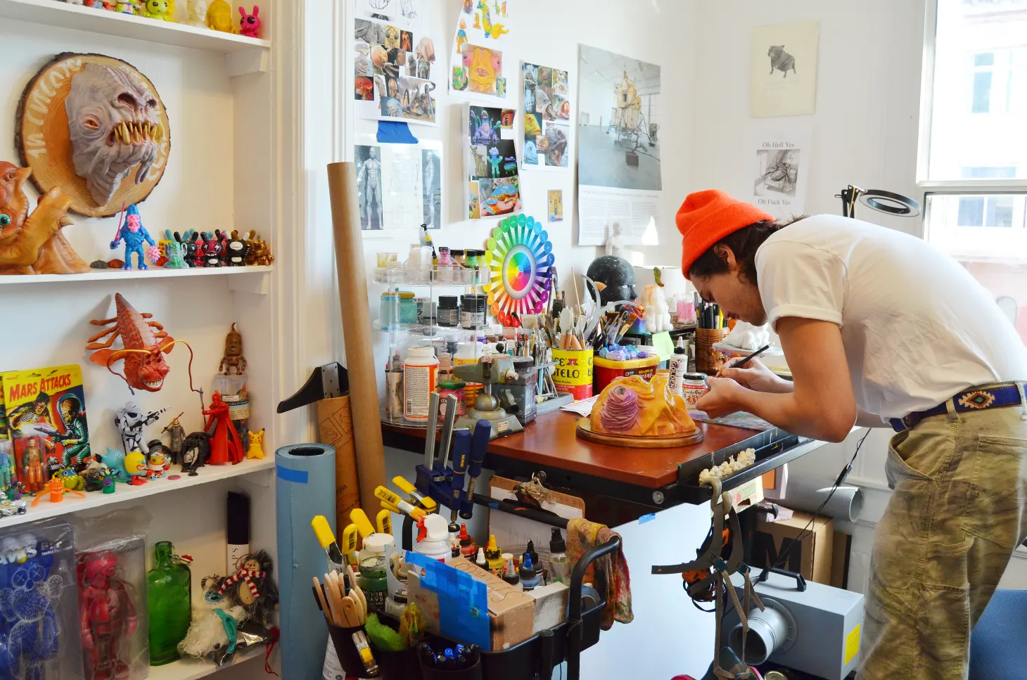 I know incredible designers who project a very clean designer persona and have tasteful objects in their houses: walnut, leather, beautiful brass hardware. And then you look at their inspiration boards for work and they're wacky, and I don’t see the purpose in reining in that inspiration. Sometimes the idea of what is good taste causes people to censor their living space. That’s not for me. I’d much rather be in a place that’s overstimulating than understimulating.