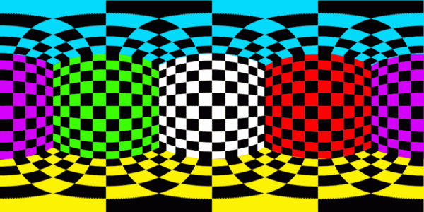 This is called an equirectangular grid, and it is one of the standards that Facebook and YouTube have aligned around. As you can see, there is significant distortion at the top and bottom of the image. These are the the poles that, when spherized, represent the top and bottom of the view. The centerline, however, remains relatively distortion-free, and luckily for us, that’s the horizon line in all directions.