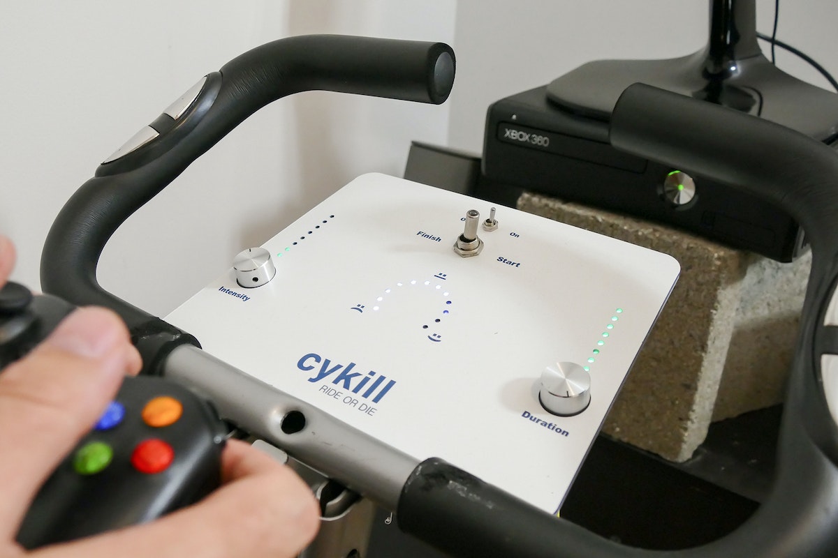 The result is Cykill, a simple tweak that connects your gaming console’s power source to an exercise bike. The only way to start the console is by riding the bike. Fail to pedal fast enough and Cykill will cut the power using a “kill switch”—a disaster for serious gamers—which not only erases game progress, but can also corrupt the console’s hard drive. “After a big scene in the game you will see the Cykill LED meter appear," he said. It gets dangerously close to power-off, which forces you to pedal like mad in order to stabilize it. "What a silly but effective invention this is!”