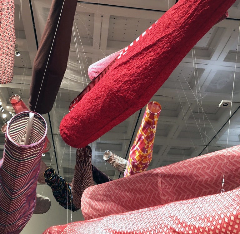 In reality, the show was much more than just a seasonal parade of modern carp streamers. Rather, the streamers served as inspiration and as a medium for presenting the textiles designed by Sudo and her company, Nuno. Gardère mentioned in an interview that as with any textile exhibition, the challenge was to showcase the works in a way that brought them to life in the absence of the human body. He looked for inspiration in the ways in which textiles lived and breathed in Japanese traditions—on this occasion, carp streamers. But instead of following the structure and styling traditionally used in koinobori, he reinterpreted it to be more structured. From the flat fish shape, he removed the fins, tails, eyes, and scales, and added backbones and rib cages so the carp would hold their shape. The resulting koinobori was something that looked familiar yet novel.