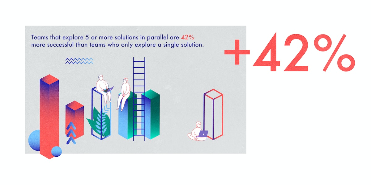 Have an idea for a new method of brainstorming, or a more effective workspace? Test it out by prototyping with high-performing teams. The key isn’t to start with the perfect solution, but to arrive at something that works and continuously improves. Identify teams that are enthusiastic about change, and start there. And don’t forget to look to your employees for suggestions—not all change needs to come from the top, and teams have a better sense of their own needs. Prototyping is an iterative process, so teams should be given the freedom to test a lot of ideas. According to our data, teams that test five or more solutions in parallel are 42 percent more likely to create successful solutions than teams that don’t do rapid prototyping.