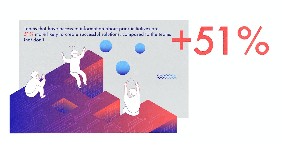As teams grow and mature, the lessons they gather from experimenting with their work environments should be packaged and shared with the larger organization. Codifying the characteristics of effective work environments can help new employees develop productive behaviors more quickly. Consider creating events or programs that allow teams to share the lessons they’ve learned from prototyping and inspire others to adopt similar changes or begin their own experiments. The data shows that teams that have access to information about prior initiatives are 51 percent more likely to create successful solutions.