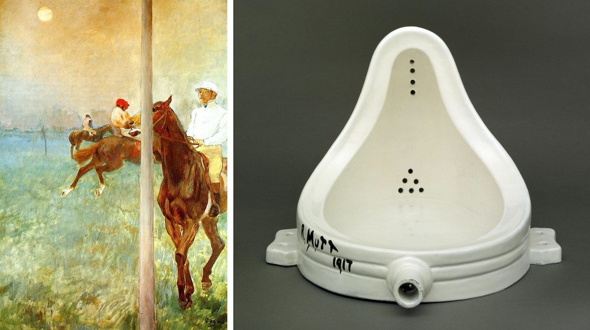 I’ve been wondering about how we might design for beautiful accidents: if wear and tear isn't a thing we can control, how we can make accidents appear elegant? At Wired magazine they call such intentional accidents Wrong Theory. Inspired by Edgar Degas’ painting, Jockeys Before the Race, in which the artist defied the conventional composition of his day by inserting a grey pole that bifurcates the scene, slicing right through one of the horses’ heads. The same could be said of Marcel Duchamp’s act of turning a urinal on its head, signing it R. Mutt, and deeming it art. Wrong Theory celebrates the act of breaking the rules.