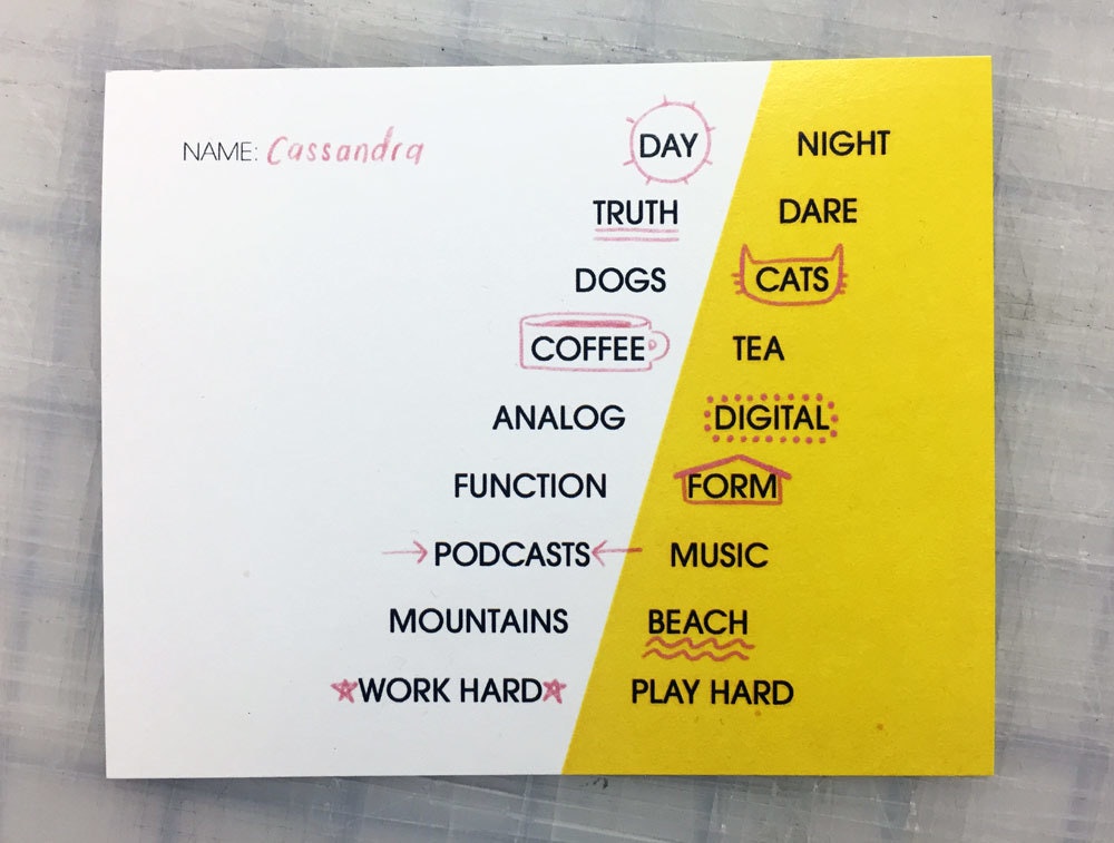 I’m a total podcast junkie while working. Some of my favorites are Reply All, Freakonomics Radio, On Being, Revisionist History, Lovett It or Leave It, Nancy, Death, Sex & Money. If I sit in silence, I tend to overthink things; listening to something keeps my momentum going, and it’s a great way to track how long I’ve been working on a project.