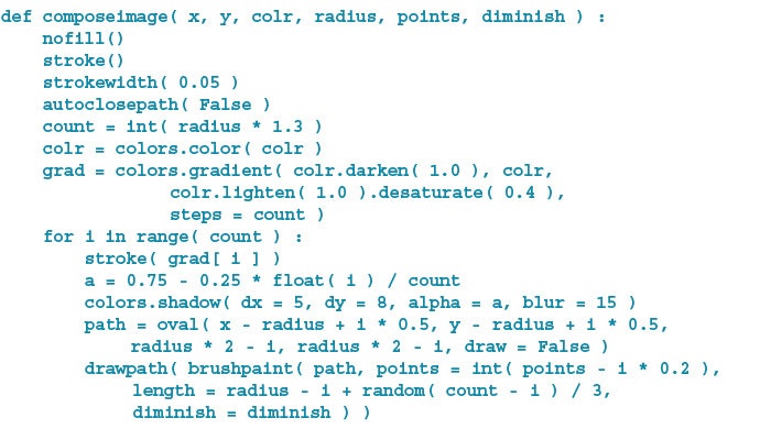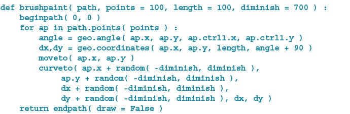 Then, just as a painter would use a specific gesture to create a certain visual effect, I used the following code to tell my computer how to hold and draw with the brush I created: