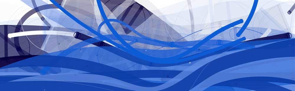 Computer graphics are based on mathematics, so when I paint with code, I am exploring and visualizing the beauty of structure, abstraction, and complexity in mathematics that most of us don’t get to see in our daily lives. It often happens that when I play with a new algorithm and see the images it generates, I'm inspired to develop them into artwork, as was the case with Tsunami, below. The inspiration for this series came while playing with an algorithm named Cornu Curve, which generates a fantastic visual effect of crazy waves. From the same code, I made six different images using a combination of a hundred curves in varying opacities and shades of blue.
