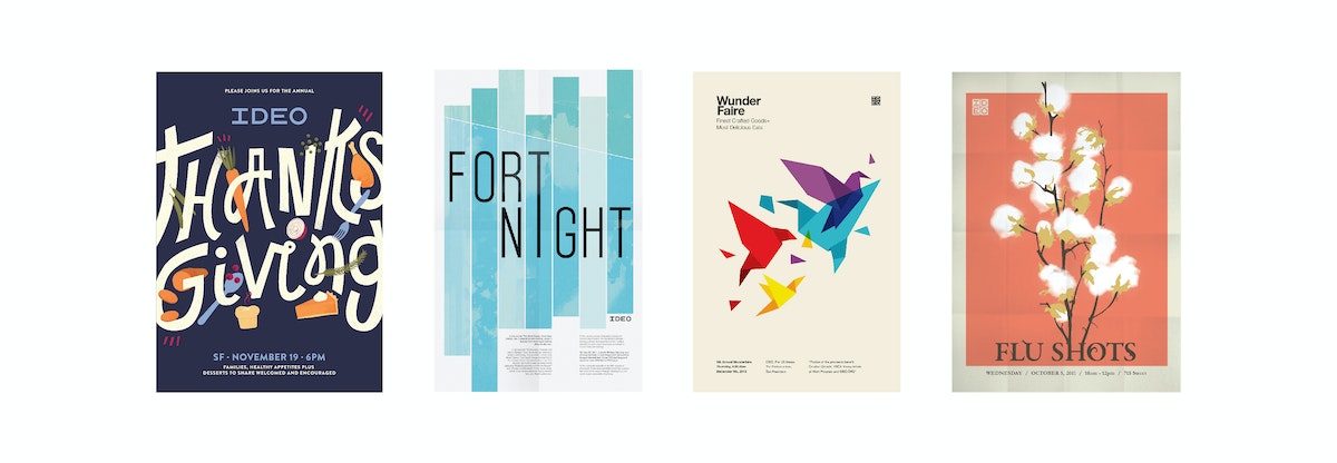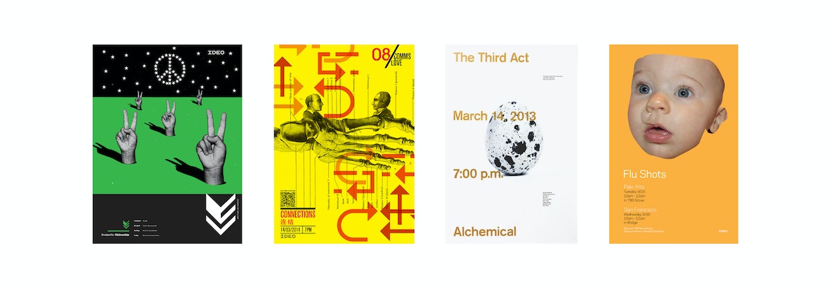 Less apparent to outsiders is the fact that the creative license that comes with making IDEO eye-candy serves a very important purpose: It’s an antidote to the intense and often prescriptive nature of designing for clients. Event posters allow us to stretch our legs, color outside of the lines, and take a new tool for a walk around the block. And in a collaborative culture that is driven by the “we” and not the “me”, these one-offs offer a rare moment in the spotlight for the artist.