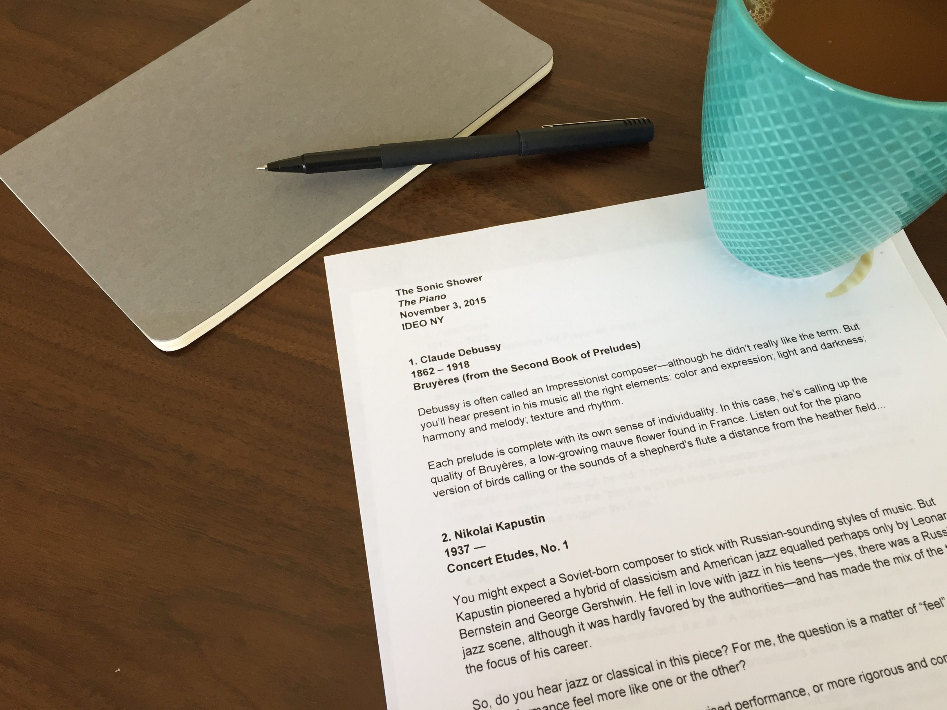 It’s just a lovely thing to start the day with music. And it’s lovely to be in the company of colleagues without the pressures of drumming up conversation. Listening together creates a delicate, light experience of community that works for everyone, even if you don’t feel much like chatting first thing in the morning.
