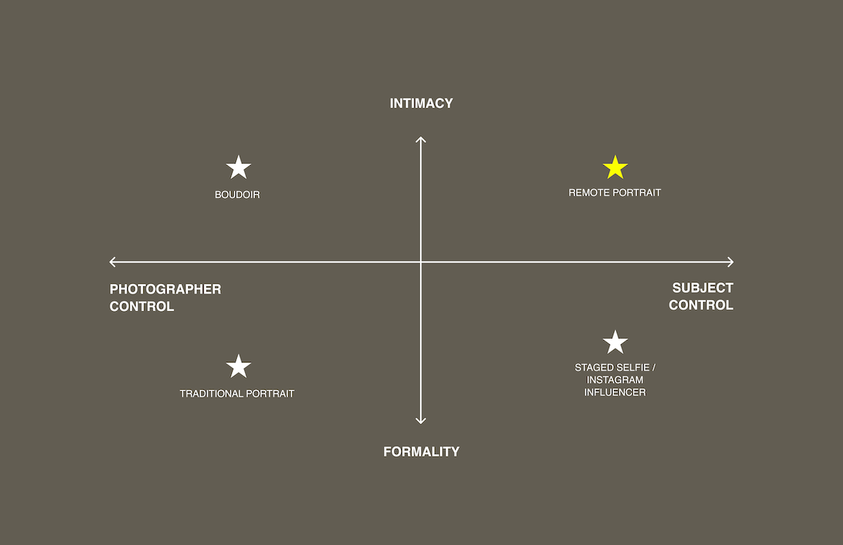 Given the constraints of a global pandemic, I asked myself a how might we: How might we photograph people in a socially-distanced way while still preserving a sense of intimacy?