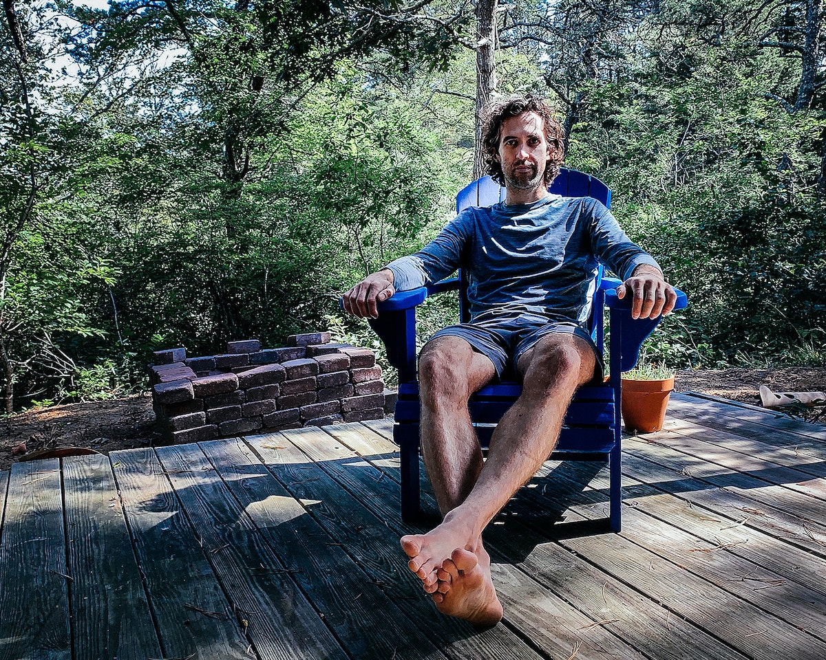 Todd also moved during the pandemic. When I dropped into his new home in Wellfleet, Massachusetts, he took me outside to his deck where he has coffee every morning. I love how the trees seem to absorb him into the picture.