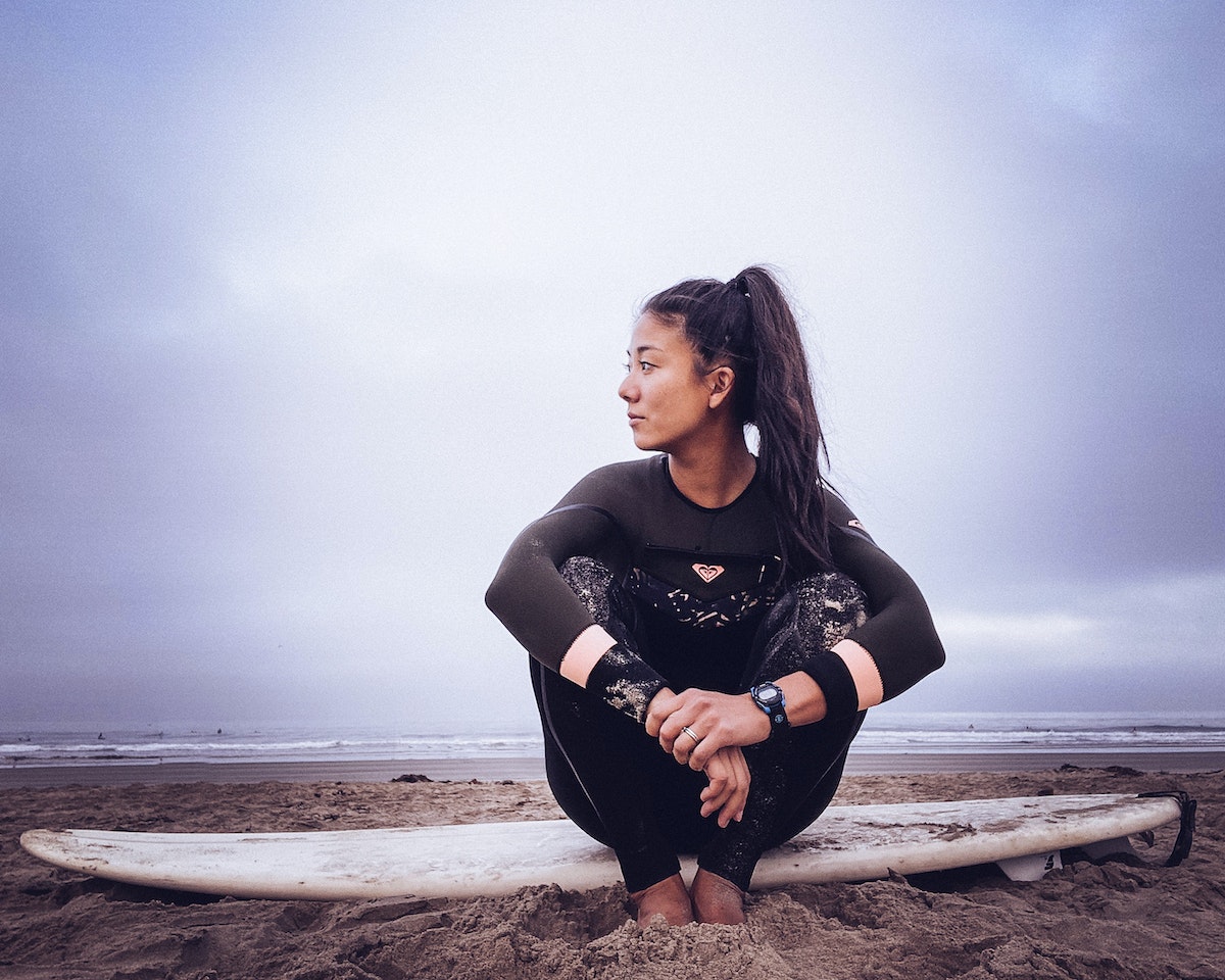 I asked Alyson, a former IDEOer, if she’d take me to the beach where she surfs every morning. I had a shot in mind: Alyson from below, holding her board with the line of waves behind her.