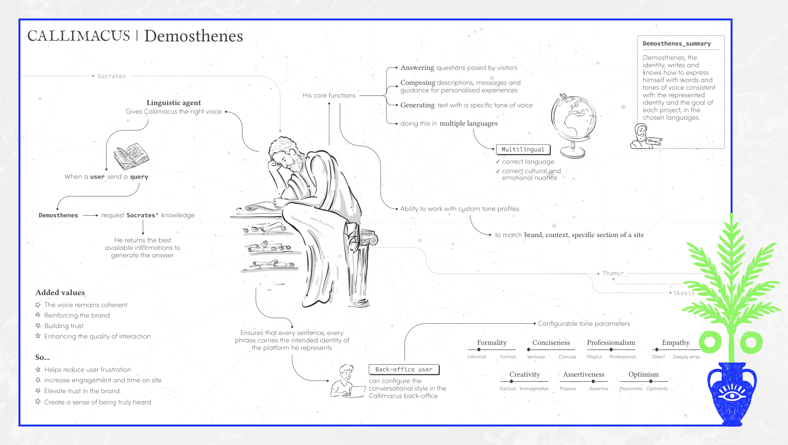 FB: One of our agents, Thamyr, named after the ancient Greek painter, continuously analyzes the user’s intent—for example, getting inspired or product search—and updates the website in real time. Each interaction the user has with the website refines this intent. Thamyr might say, “It seems like this user is more interested in product search or is seeking inspiration.” She then goes to our agent, Socrates, and says, “Hey, please provide me with products the customer might be interested in.” However, it turns out the user is not really into the product but rather wants to explore the brand. So Thamyr decides to feature fewer products, but more editorial content. She then references the design system, selects the appropriate components, and builds the interface accordingly.