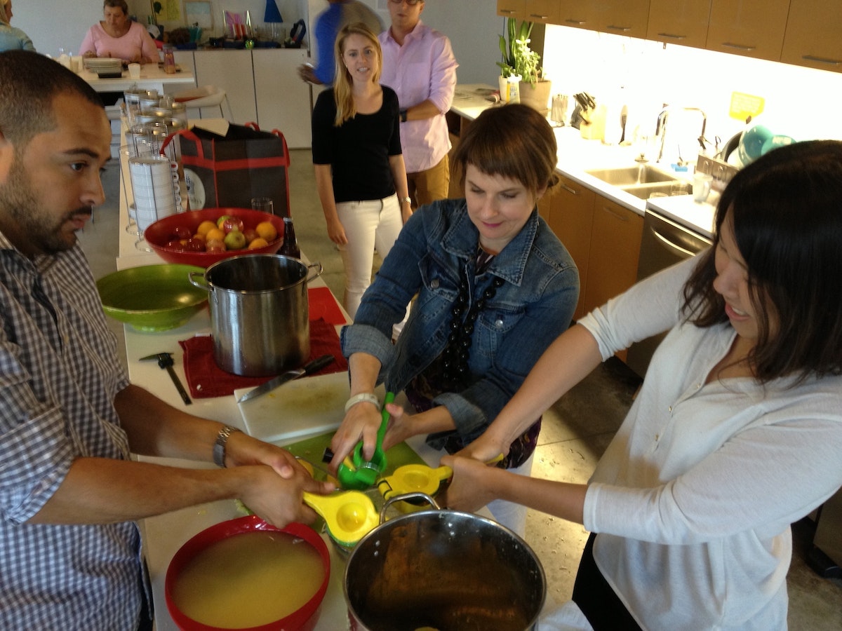 Challenge #1: Two guests of honor called for not one brew, but two! We heard Tom enjoys light, Japanese-style beers and that David doesn’t really drink, so we decided to make a Belgian-style wit for Tom and sparkling organic lemonade for David and then mix them together to create a shandy, a refreshing summer drink.