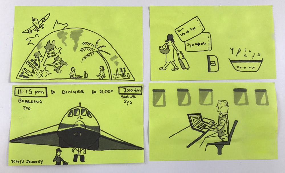 These sketches are from our interview with an extreme commuter. The express his ideal travel experience: an environment that brings the outside in and serves as an extended coworking space.