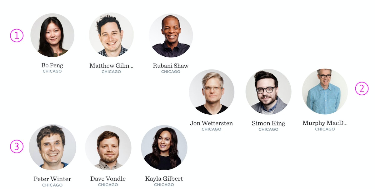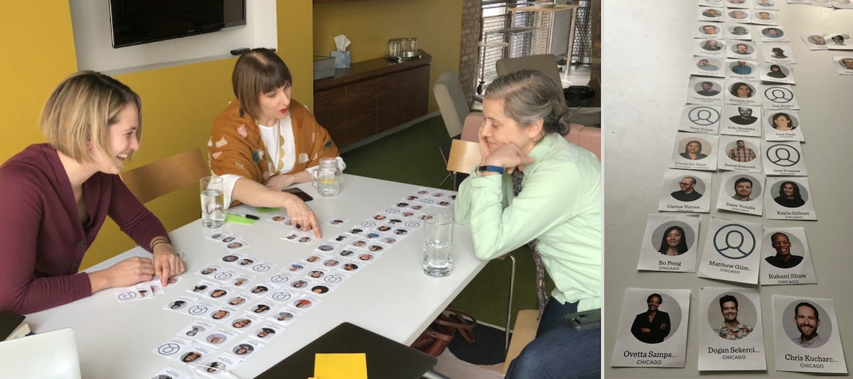 Together, we decided that groups should comprise three people whose paths don’t cross day-to-day, while also striking a balance of design disciplines—not all interaction designers or all data scientists. And an ideal triad would mix people who were new to the studio with those who had been around longer. With these principles ironed out, we got to building the algorithm.