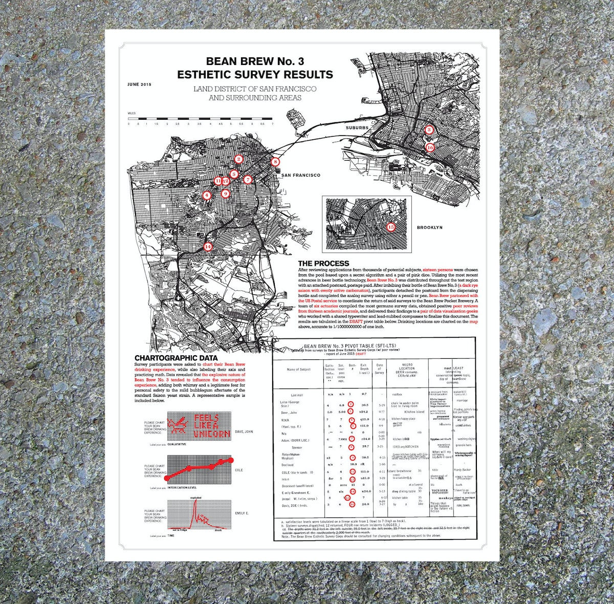 So I asked myself: Could I contextualize the combined drinking experiences of each person who received a bottle of Bean Brew? Could I turn that into a map? And could I deliver that map back to Bean Brew drinkers months later in the form of a delightful silkscreen poster? That became my design challenge.