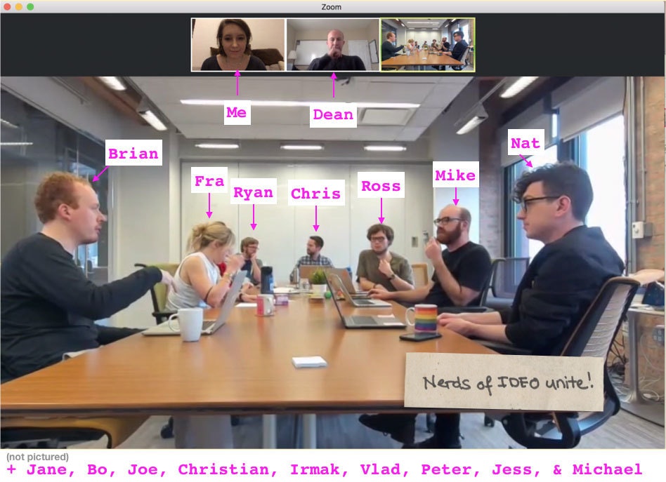 My home base is Chicago, but I’m stationed in Palo Alto for my current project. Luckily, I can still keep up with what the rest of the data scientists at IDEO are doing through a weekly video call that we can all dial into. We help each other troubleshoot problems we’ve encountered in our projects, share new methods we’ve learned, and talk about personal projects we’re pursuing. This week, one of the other data scientists is telling us about a website he’s making that allows his parents to see where he is (but not his exact location). We have a separate meeting on Friday mornings for those of us in Palo Alto specifically. I like both meetings because they help me keep up to date with how our data science practice is evolving, since it’s the newest design discipline at IDEO