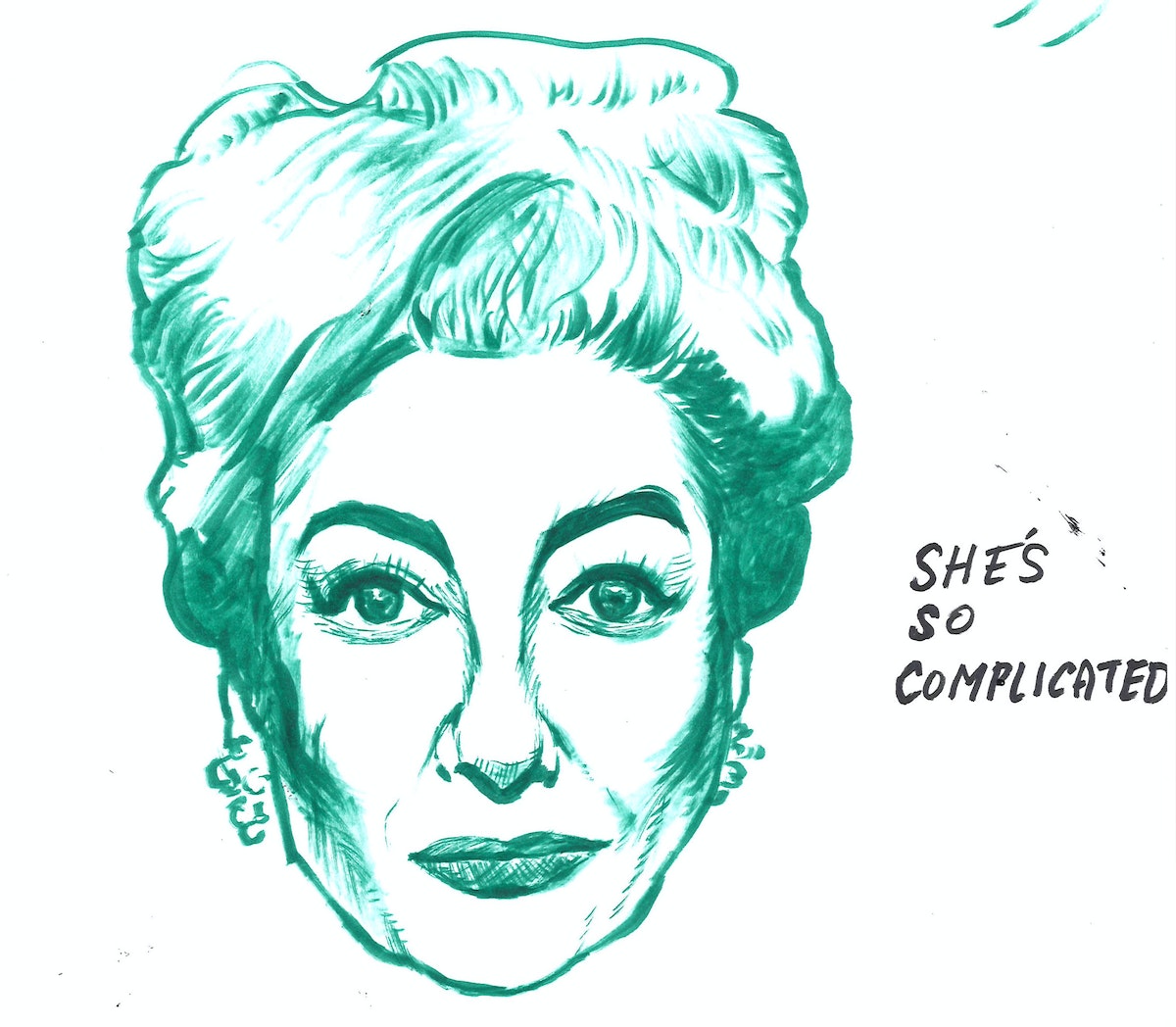 Lately, I’ve been drawing complicated women in the evenings. A woman’s physicality is so much more political than a man’s—and to me, this makes it so much more powerful. A woman has more expectations placed on her physical looks—her clothes, her hair, even her expression—and that only makes it that much more of a provocation when those expectations are thwarted.
