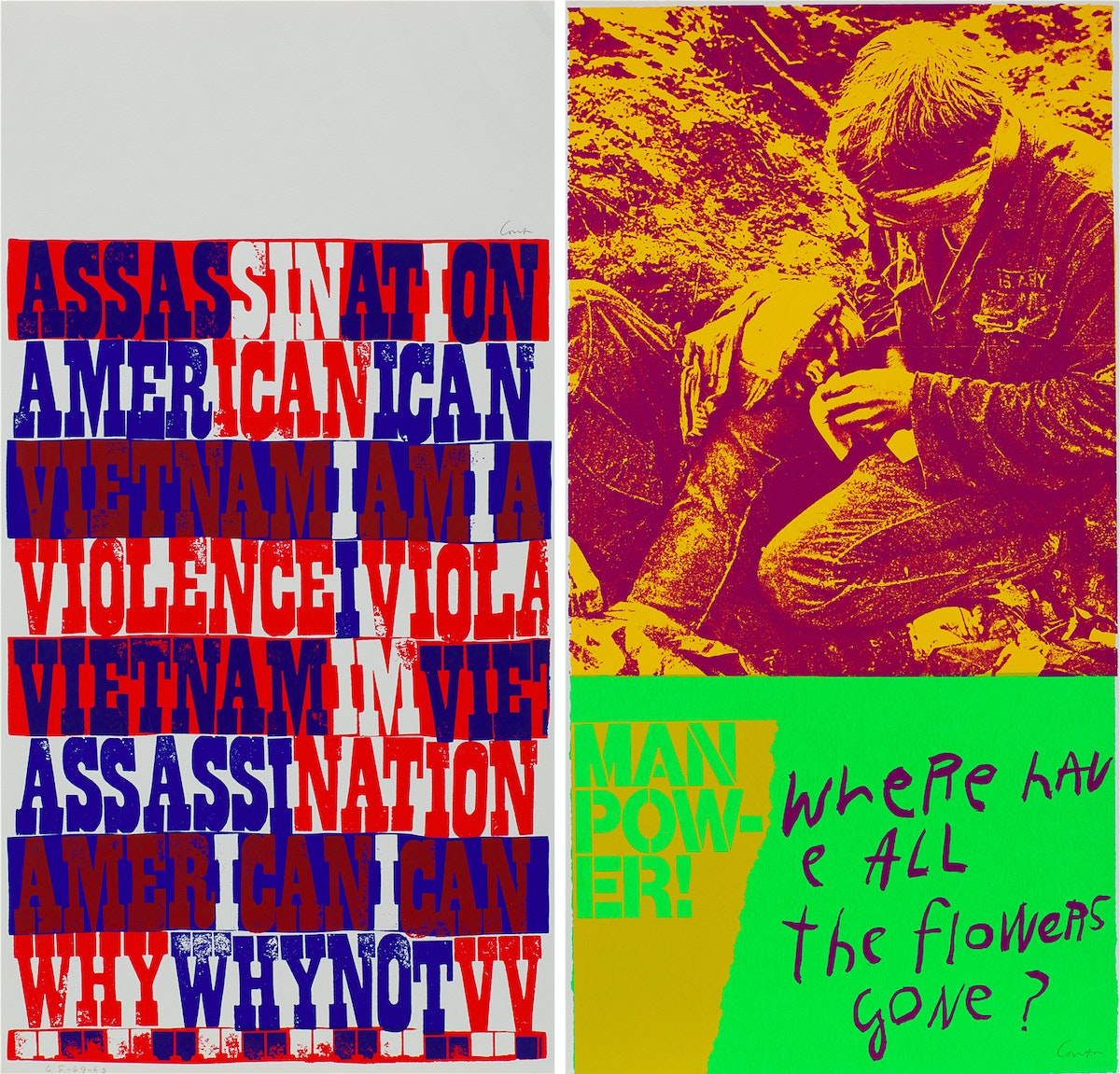 Her work, now recognized in the Pop canon alongside Andy Warhol and Roy Lichtenstein, challenged cultural norms by reappropriating common packaging and advertising slogans and setting them alongside passages from the Bible, pop music, and classic literature.