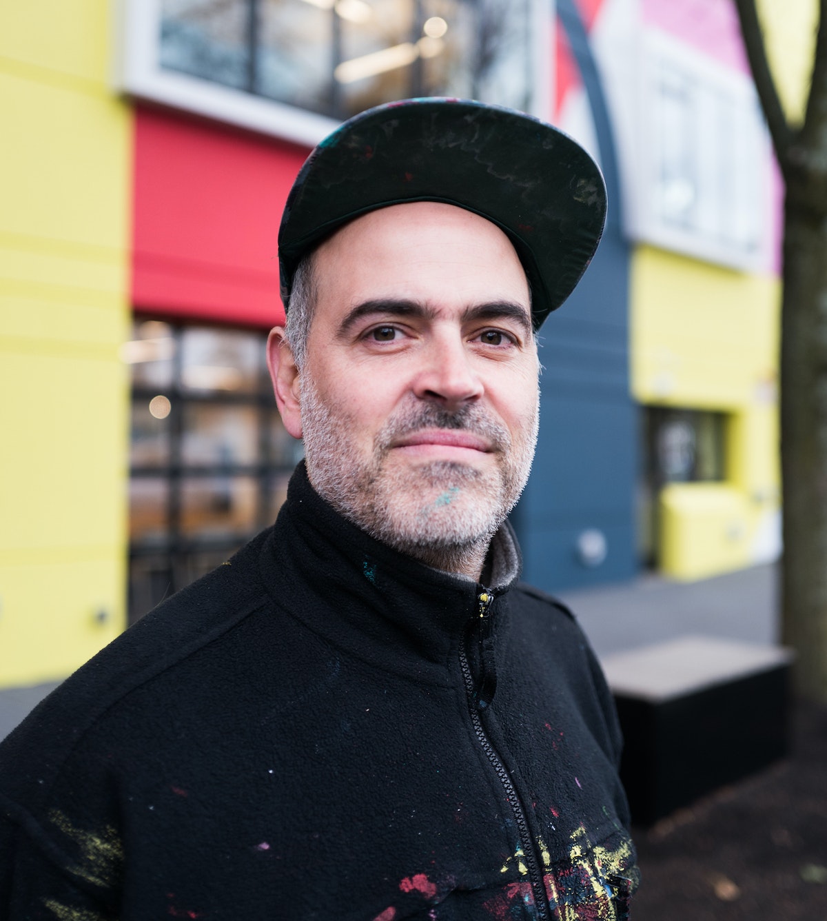 Eltono has done installations in more than 90 cities around the globe; each unique, but connected by a calculated joy. His work is made from randomly placed forms inspired by the architectural elements of the site. Though we had yet to meet, his work felt right—a cosmic alignment of our values. And once we did share ideas, we were stoked, except about one thing—color.