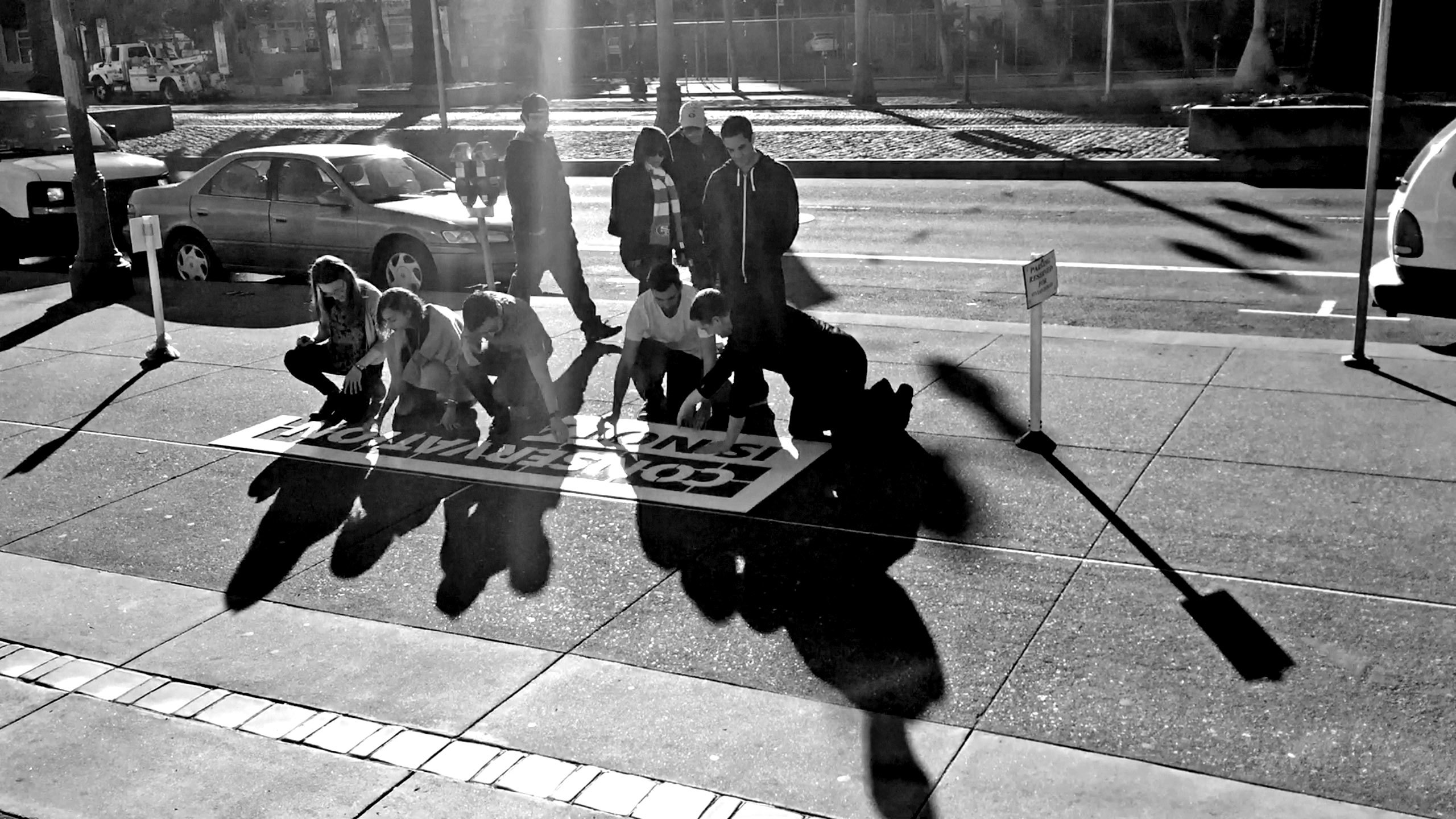 Since then, I have experimented with pumpkin carving via laser cutter; flown toy cars from rooftop ramps into frothy mugs of beer; teamed up with a friend to explore and film fluid dynamics studies using a syringe and typewriter ink; 'printed' Nyan Cat out of yarn via a hacked, decades-old electronic knitting machine; and twice stencil-graffitied IDEO’s San Francisco headquarters—once with moss and once with superhydrophobic solution.