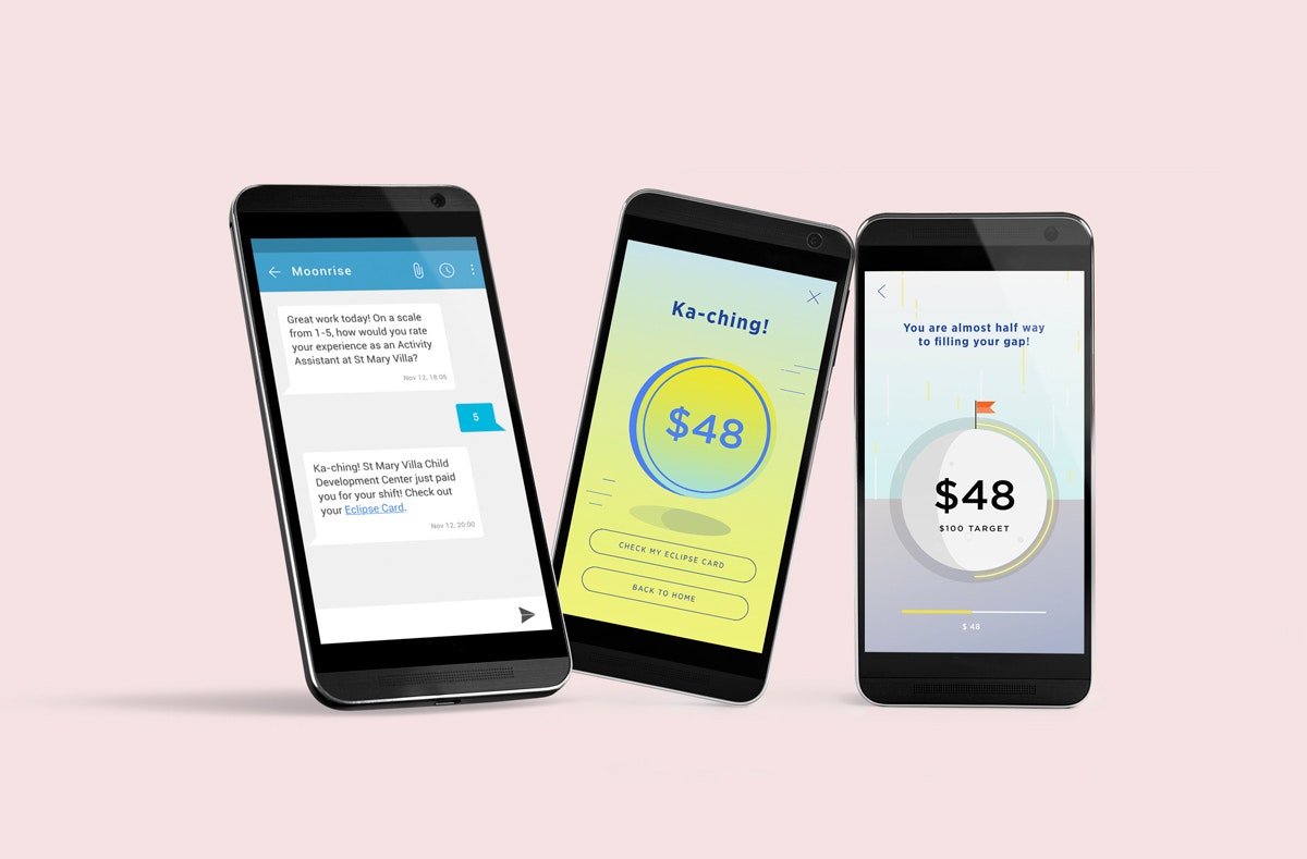 The Moonrise platform lets workers sign up for shifts with partner organizations through a simple text message interface, and get paid as soon as their shifts are done. Employers who sign up to partner with Moonrise can list open shifts on the platform.