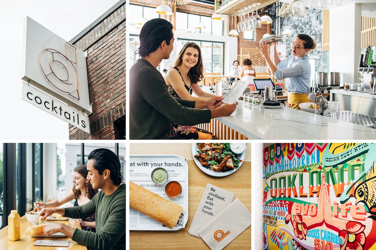It’s a Thursday afternoon in Oakland, California. A line of lunchtime diners snakes out the door of dosa by DOSA. Upon entering, eaters are greeted by the smell of tangy dosa—a large paper-thin crepe made from a fermented batter of rice and lentils—and sweet, spicy chai. Turquoise chairs pop against a floor-to-ceiling mural by Oakland artist Namita Kapoor that transports diners to Chandni Chowk, one of the busiest markets in Old Delhi, as if enjoying their food at a local vendor.