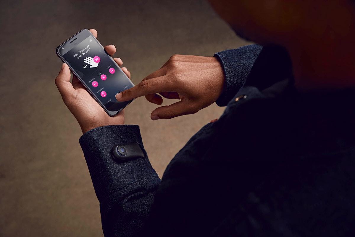 Instead of dismounting and digging for a phone, you brush your hand along your jacket sleeve for directions, then double-tap the denim to re-start your music. Without taking your eyes off the road, you’ve taken care of the problem.